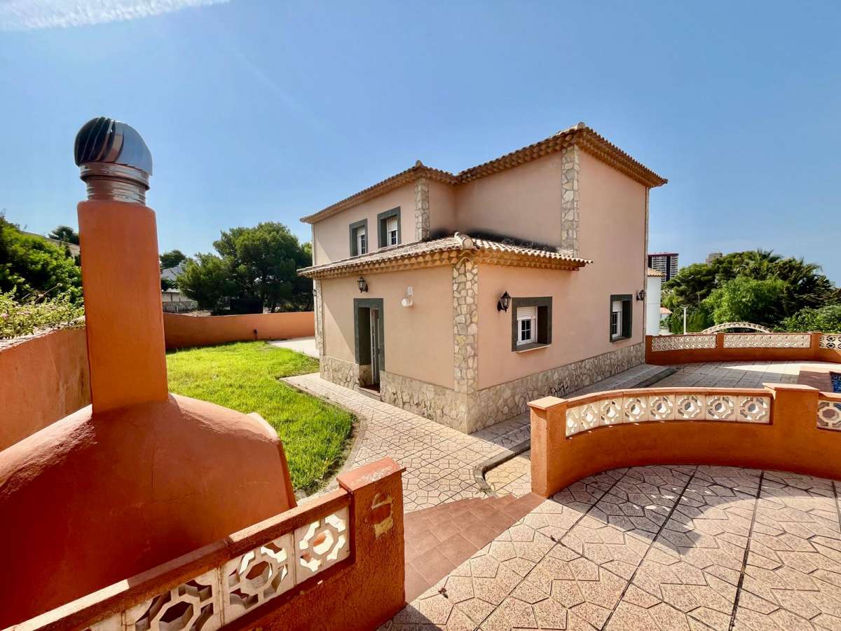 Welcome to this majestic villa in an exclusive area of Calpe, just steps from the sea With 345 m² of built area on an 867 m² plot, the property offers plenty of space both indoors and outdoors, ideal for families or gatherings with friends. Its solid construction, with 40 cm injected insulation and a 12 cm roof insulation, ensures year-round thermal and acoustic comfort, durability, and great long-term value. This villa combines spaciousness, light, and quality construction. It is located in one of the most desirable areas of Calpe, with a privileged setting boasting sea and mountain views, just a few minutes' walk from the beach, supermarkets, restaurants, and main services. Upon entering, one finds a welcoming foyer that connects to a spacious, bright living room and the separate kitchen finished in high-quality solid wood, inviting family time. Adjacent to the living room, an office that can double as an additional bedroom adds versatility. Up the interior stairs, we find three bedrooms with built-in solid wood wardrobes and a full bathroom, while downstairs, an extra bedroom, bathroom, laundry room, and multi-car garage offer space and functionality, ideal for guests or as a separate apartment. Outside, the villa features a private pool, garden, and an outdoor kitchen with a built-in barbecue and wood-burning oven, perfect for enjoying the Mediterranean climate. Don't miss this opportunity. Contact us for more information or to schedule an appointment.